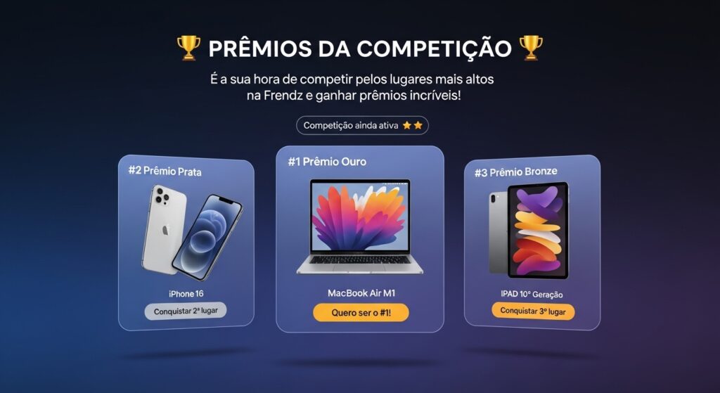 Participar dessa competição significa ampliar seu alcance, fortalecer sua marca, conquistar novos clientes e entender, na prática, como vender na Frendz de forma cada vez mais eficiente.